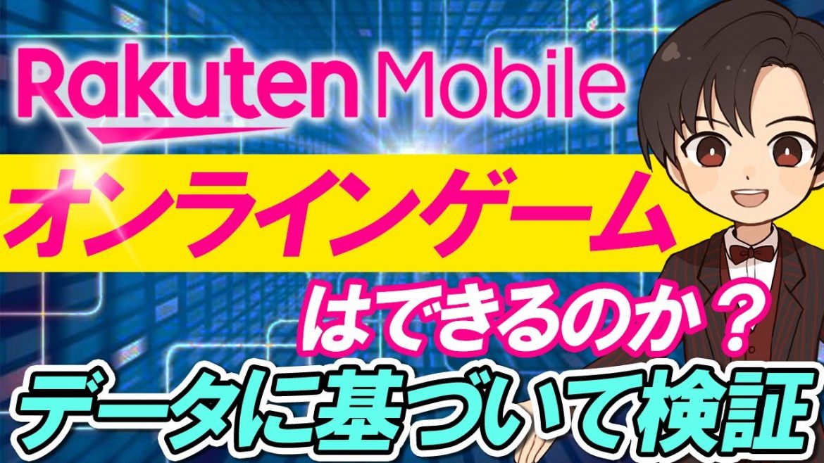 Summarize this content in Japanese 皆さんこんにちはバンないです本日はよくある質問 楽天モバイルデオンラインゲームはできるのかデータに基づいて検証といったテーマで お話ししていきます今回の動画では通信費の節約のために 楽天モバイルに興味があるけど楽てモバイルでも快適にオンラインゲームができるのか 不安と悩んでいる方に向けて 楽天モバイルでオンラインゲーム ができるのかしっかりとデータに基づいて検証していきたいとおもいます 動画の構成としては楽天モバイルデオンラインゲームはできるのか そしてテザリング wi-fi ルーターはどちらがいいのかといった流れでお話しし ていきます今回の動画を見れば楽天モバイルでオンラインゲームができるのか 逆にこんなタイプのオンラインゲームだと光回線が必要 といった判断基準が分かりますので是非最後まで見ていただければと思います ちなみに今回の動画はこちらの楽天モバイルと光回線の比較動画の補足にあたる動画と なっています まだこの動画を見ていないよという方は先に観ていただいた方がより話がすっと入って くると思いますので 概要欄にリンクを貼っておきますのでぜひ見てみてください という感 で早速本題に入ろうと思いますがその前に私のチャンネルではこんな感じで日々の生活 を豊かにするお金の知識を研究し皆さんが人のために使えるお金を増やして皆さんの 家族や友人まで笑顔にする発信をしています もし今回の動画を見てをのチャンネル観光になりそうだな 面白い発信しているなと感じた方はぜひチャンネル登録して頂けると嬉しい ですっということで早速楽天モバイルでオンラインゲームはできるのか 一緒に見ていきましょうまず最初にエイペックスレジェンド8ポートないとマリオ カート8スマブラといった人気のオンラインゲームを快適にプレイするために必要な 通信速度というのはこのようになっていますただここに記載している数値というのは 公式ページを参照できたものもあれば いろいろな方がブログ記事で通信速度の検証をしてくれていたものを参考にしている ものもあります100%正確というわけではないのであとはでも快適にプレイするため のメイハツとして考えて頂ければと思います エイペックスや4とないとでは70メガ以上デッドバイデイライトや レジェンドオブレジェンズあたりだと50メガ以上 gta オンラインです はベルあたりで30名が以上という結果となりました それでは続いて楽天モバイルで利用できる通信速度というのは私が調査した限りでは こんな結果となりました 平均速度としては約25名がですが東京や大阪といった都市部だと20から50目が それ以外の地域では後から20メガ といった感じでした参考とするために ニューロ光や au ひかりソフトバンク光などといった人気の光回線で利用できる 通信速度というのも調査してみました 早いところでは400名が遅くでも200名が近い通信速度を利用することができてい ます推進策では比較するまでもなく光回線の圧勝ですが通信速度の数値だけを見ると 年 であればスマブラ屋 gta オンラインといったそこまでリアルタイム性が求められ ないゲームなら楽天モバイルでも快適にプレイてきそうと思われるかもしれません しかしオンラインゲームを快適にプレイするために考慮しなければいけないのは通信